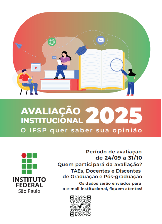 A Comissão Própria de Avaliação – CPA/IFSP oferece a oportunidade para que você participe do diagnóstico da realidade do IFSP, para tanto, responda à pesquisa intitulada: "Avaliação Institucional 2025".