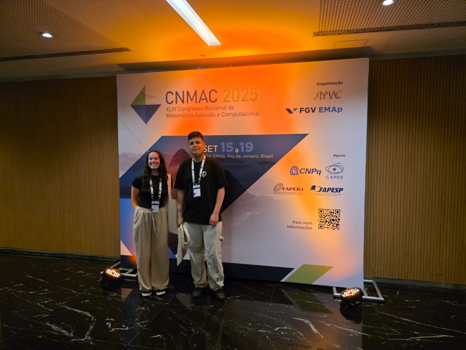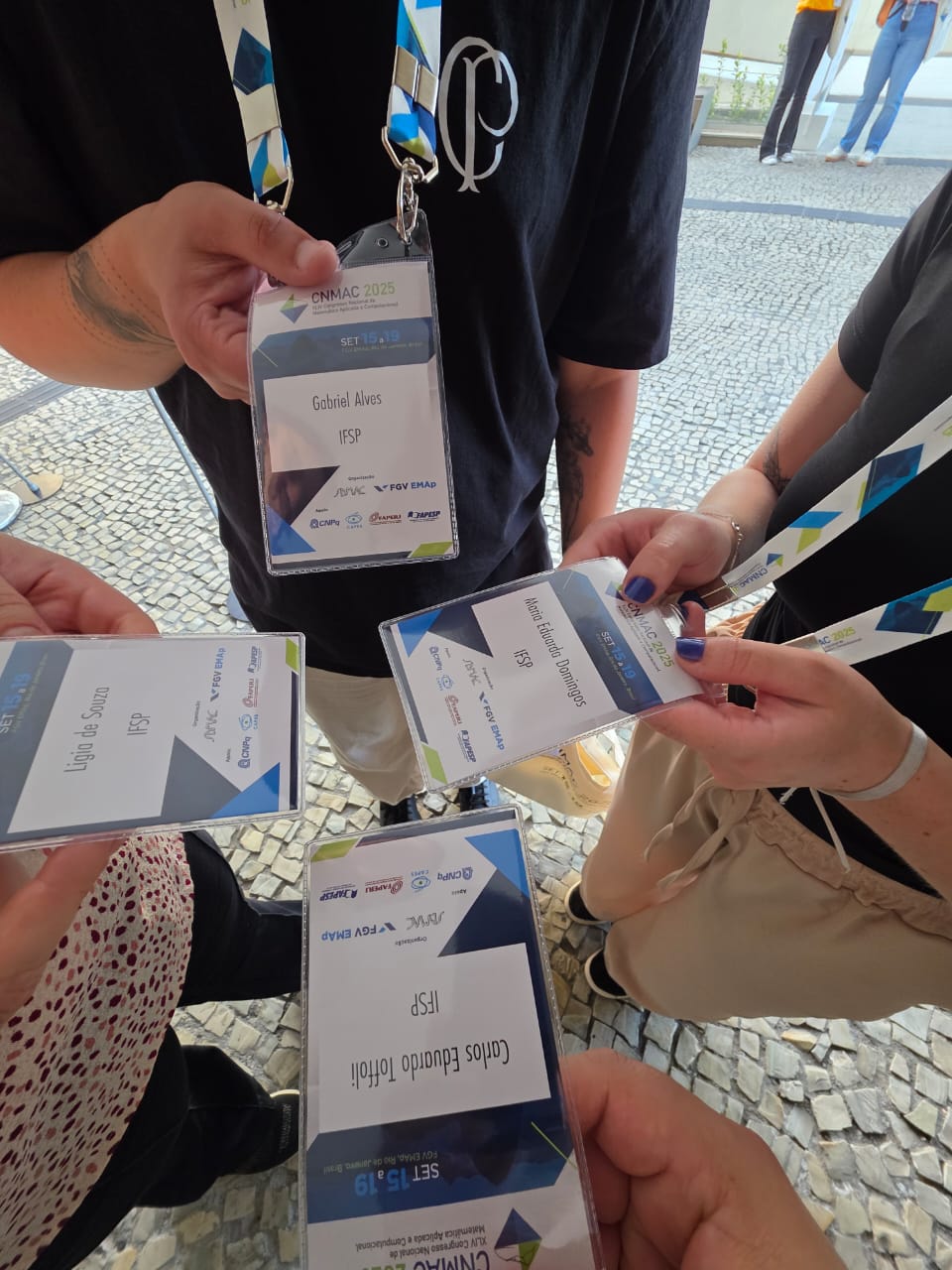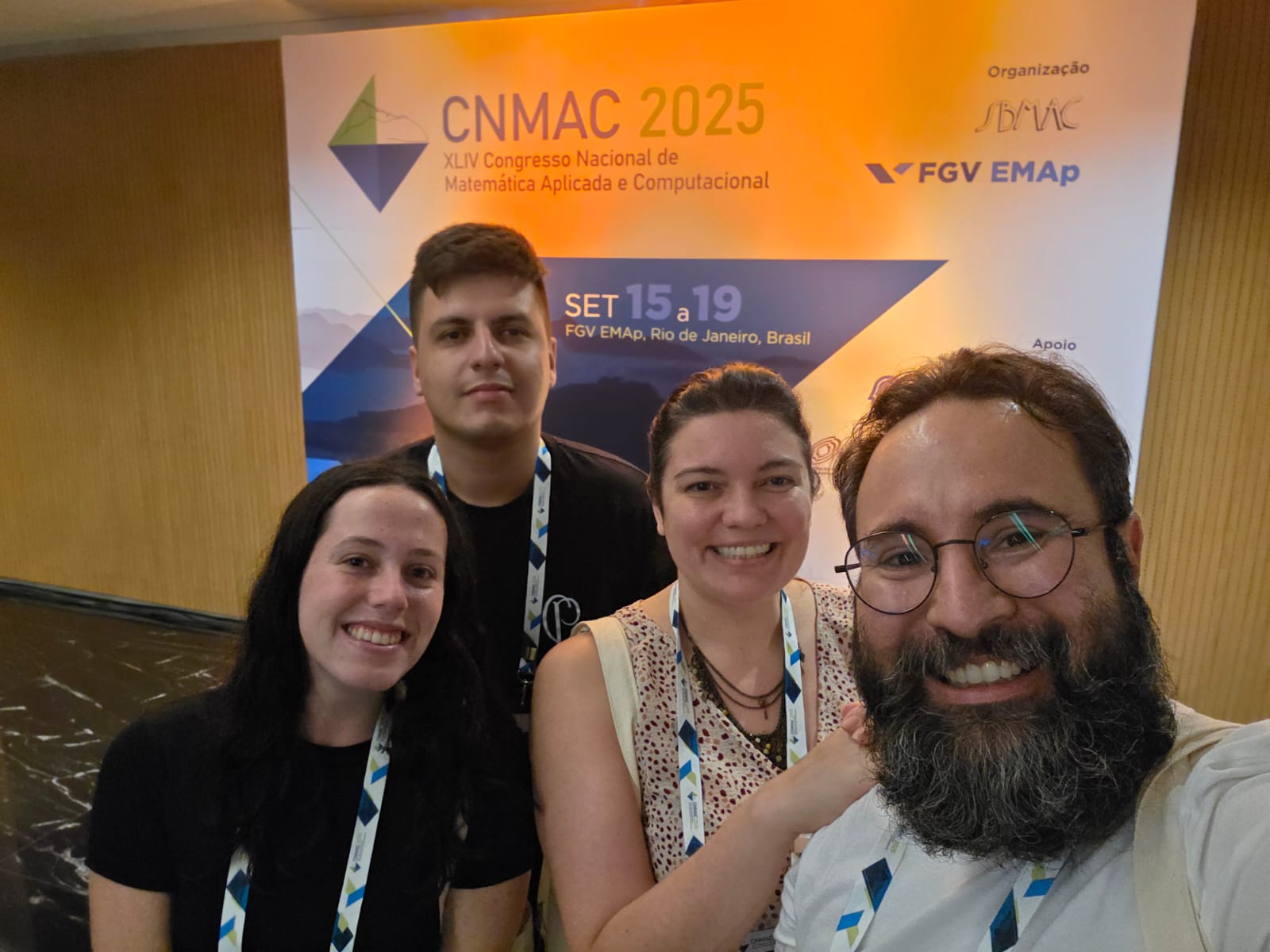 Entre os dias 15 e 17 de setembro de 2025, os professores Carlos Eduardo Toffoli e Ligia Corrêa de Souza e os alunos Gabriel David dos Santos Alves (4º semestre) e Maria Eduarda de Souza Domingos (8º semestre) do curso de Licenciatura em Matemática do Instituto Federal de São Paulo - Campus Campos do Jordão (IFSP-CJO) participaram do XLIV Congresso Nacional de Matemática Aplicada e Computacional (CNMAC 2025). O CNMAC é o evento mais importante da Sociedade Brasileira de Matemática Aplicada e Computacional (SBMAC) e tem se convertido no maior evento da área tanto do Brasil quanto da América Latina. O congresso tem como objetivo congregar professores(as), pesquisadores(as) e outros(as) profissionais de universidades, centros de pesquisa e empresas, das mais diversas áreas da Matemática Aplicada e Computacional, para divulgar e discutir resultados recentes das suas pesquisas e trabalhos em andamento. O evento ocorre desde 1978 com periodicidade bienal, inicialmente, e anual desde 2015.