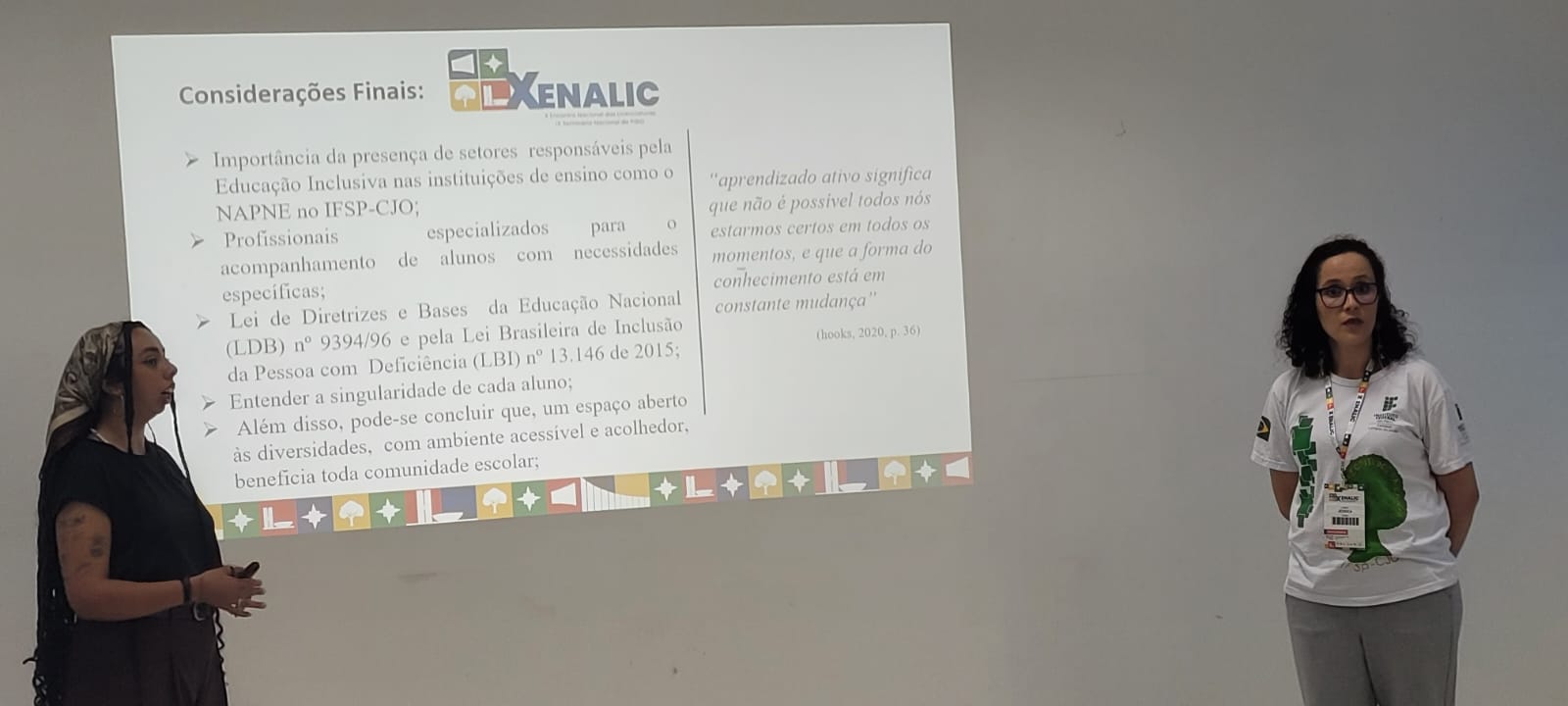 O trabalho “O papel do Núcleo de Apoio às Pessoas com Necessidades Específicas (NAPNE) na construção de uma aprendizagem significativa: uma experiência de estágio supervisionado”, de Emilly Rafaela Lucio de Lima, Everaldo Gomes Leandro e Thais Anita Silva Barros, destacou a importância do NAPNE no acompanhamento de estudantes com necessidades específicas, a partir de uma experiência formativa no contexto do estágio supervisionado.